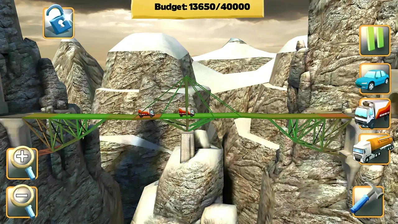 In Bridge Constructor, you prove yourself as an accomplished master bridge builder! Test your construction skills and build bridges over deep valleys, canals, and rivers. The stress simulator reveals whether the bridge you build can hold the weight of cars and trucks or if the construction will crash.