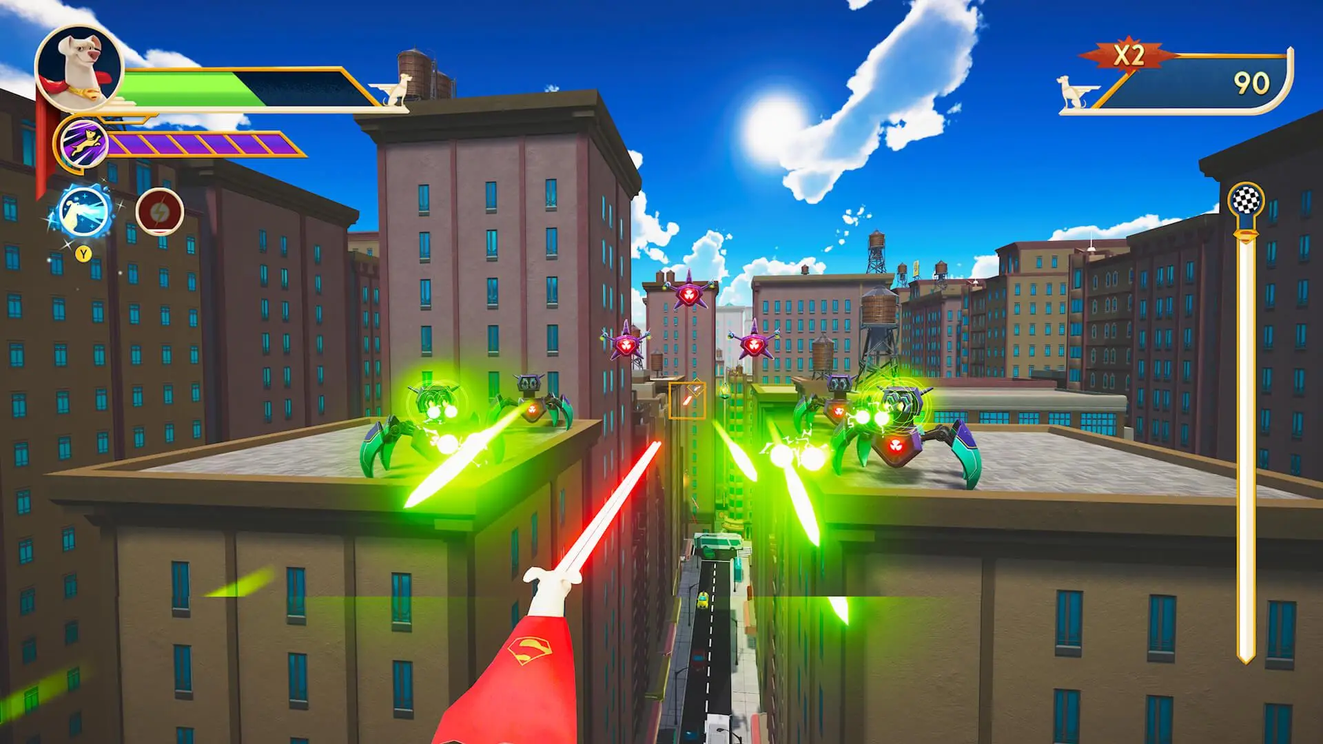 Play as laser-eyed super-dog Krypto or Batarang-powered Ace. Change your hero and powerups to experience missions in new ways.