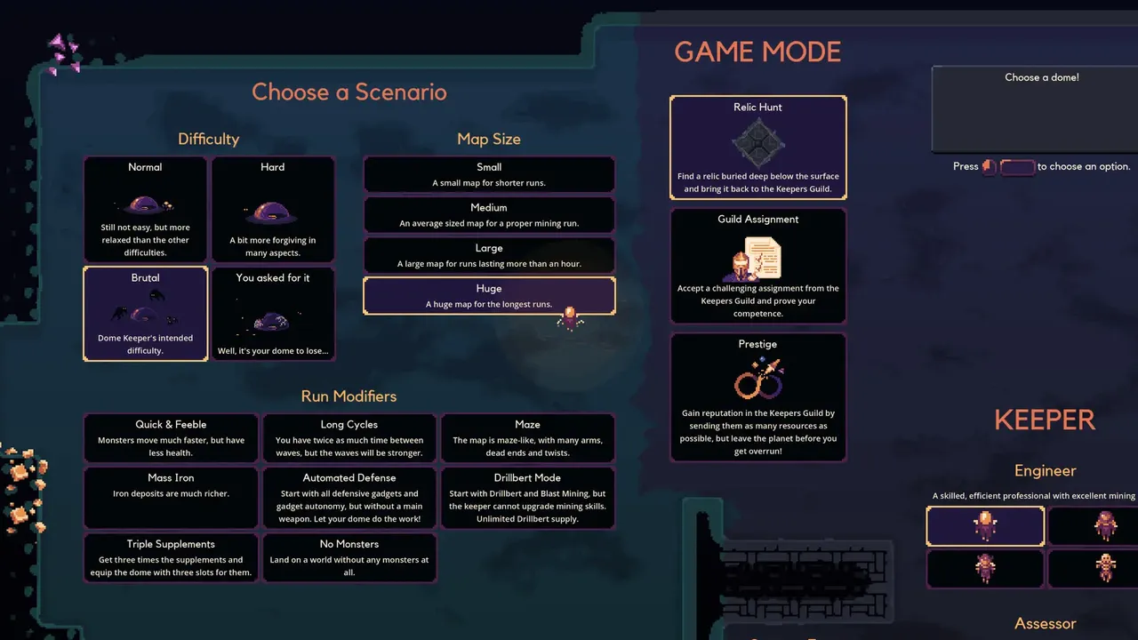 Customise your setup and find a playstyle that works for you by choosing from two unique keeper types, four different domes, and four primary gadgets. Pick a run modifier, adjust difficulty settings and discover dozens of secondary gadgets while you dig through the earth. "