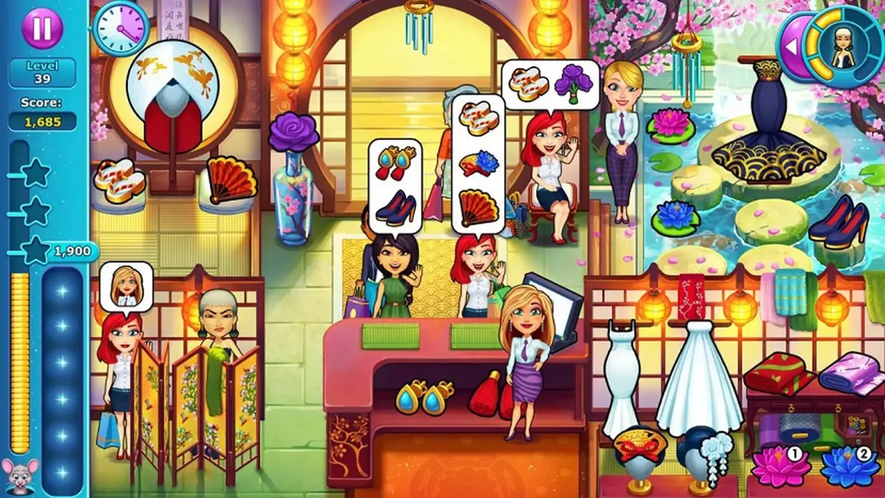 Now a renowned stylist, Angela is spotted by a great fashion designer who asks her to work for him, and to let him teach her how to make wedding dresses. Will she be up to the challenge? Your job is to help her manage clients efficiently, all while making the most beautiful dresses possible and helping her friend plan his wedding.