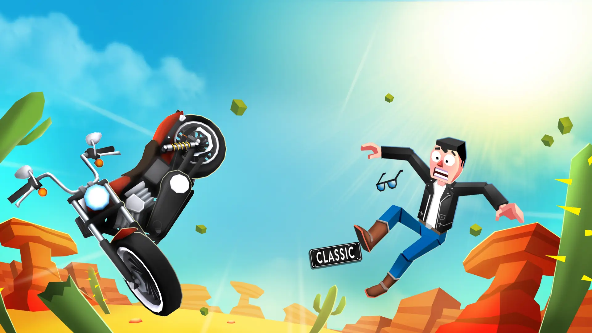 In this physics-based motorbike game you must maneuver an endless mountainside dodging hazardous terrains such as cacti, rocks, traffic and trains resulting in some fun and hilarious near misses and crashes.