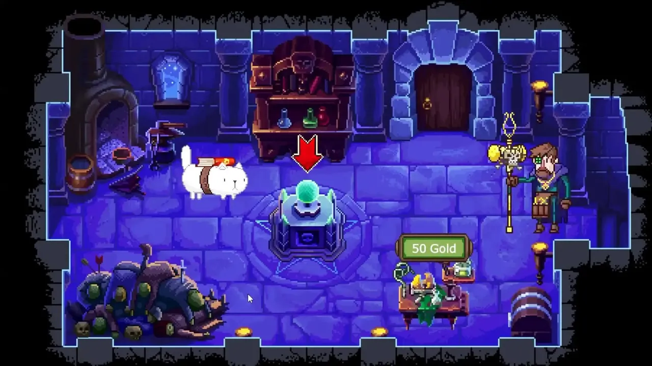 "In a dark, dark tower a dark, dark Necromancer is performing a dark, dark ritual as dark, dark clouds swarm… Wait a second! What is a white cat doing here?