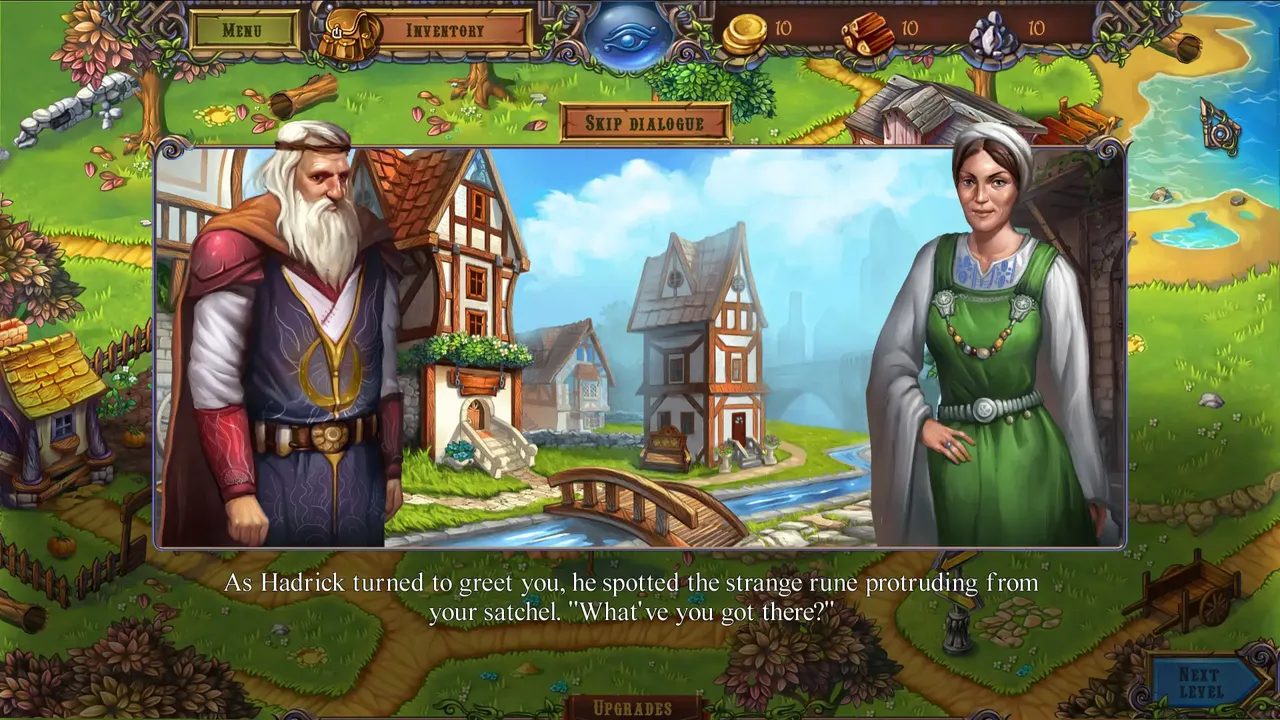 Runefall is unlike any match-3 you've played. With every match you make, the camera moves in the direction of your match, allowing you to travel in all directions and explore the massive levels. Match over sand, grass, and dirt tiles to clear them and discover hidden items like keys to unlock treasure chests, unique quest items, or items to help you get past environmental obstacles like rivers, cliffs, and overgrown vines. Match shield pieces to fill your jump meter and use the mini-map to immediately jump to anywhere in the environment. Match gold, wood, and stone pieces to collect those resources and use them to upgrade the town of Rivermoor. Every town upgrade rewards you with bonuses like new power-ups and abilities.