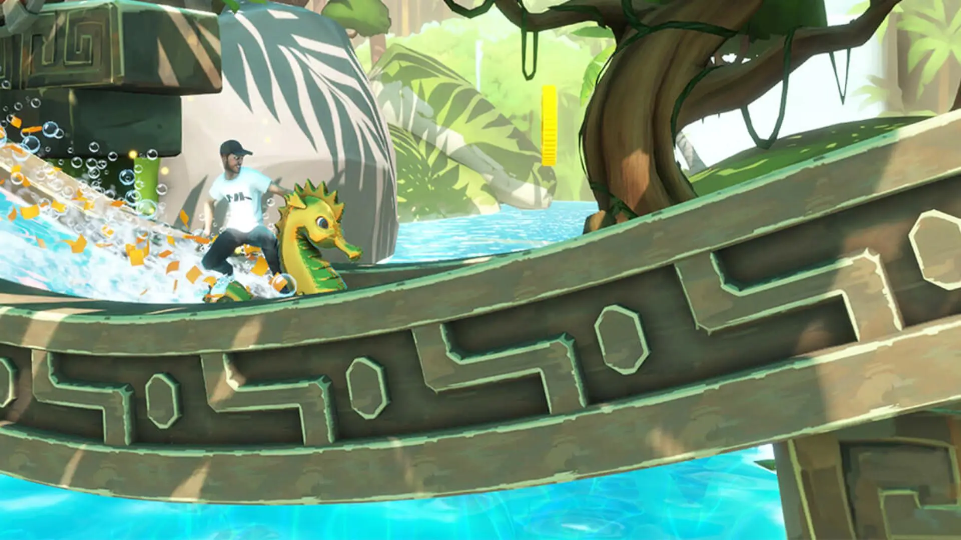 Slide, jump and balance your way through insane tracks packed with race-platforming dangers and extraordinary enemies. Overcome insane challenges like rolling boulders, wobbly constructions, banana bomb throwing monkeys, and even a colossal kraken! Nothing goes too far for these stars!